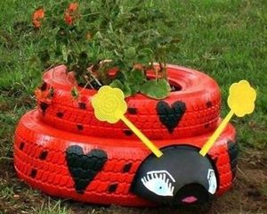Украсить или сделать более функциональным садовый участок можно с помощью различных креативных фигур, сделанных самостоятельно из старых покрышек. | |