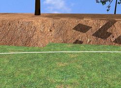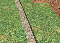 Спланируйте область проекта, где будете монтировать бетонную стенку. Используйте аэрозольный баллончик с краской для нанесения линии на почвенную поверхность, где будет размещаться подпорная стена. |