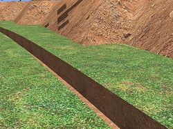 После монтажа подпорной стенки, заполните пазухи грунтом или речным песком, между траншеей и стеной, после чего произведите утрамбовку засыпанного грунта. |