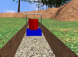 При рытье траншеи, старайтесь ее дно сделать ровной, а так же по горизонтали, для того чтобы в последствии стена имела ровные швы между блоками и не имела наклона. |