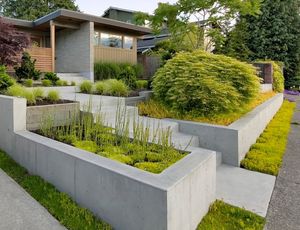 Если вы собрались озеленить вашу территорию вокруг дома, то подпорная стена идеально впишется в ландшафтный пейзаж. Бетонный блок, это один из наиболее прочных материалов для создания подпорной стены, из которого можно сделать как прямолинейную, так и криволинейную стену. Строительство стены, может быть достаточно простой, в зависимости от ее конфигурации. |