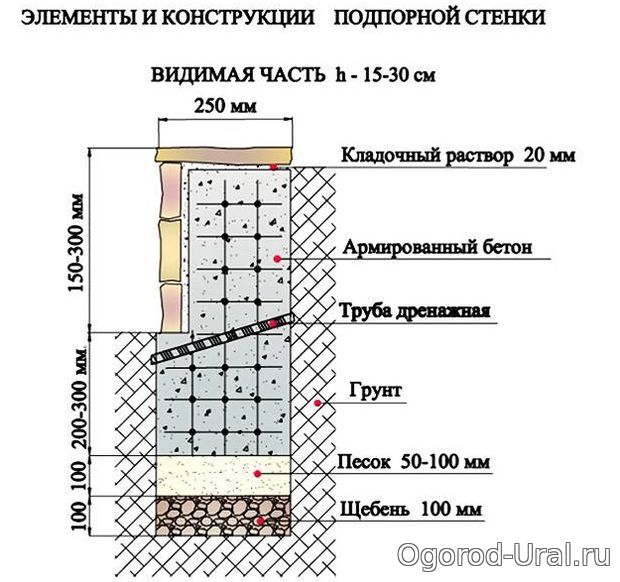Устройство подпорных стенок из различных материалов