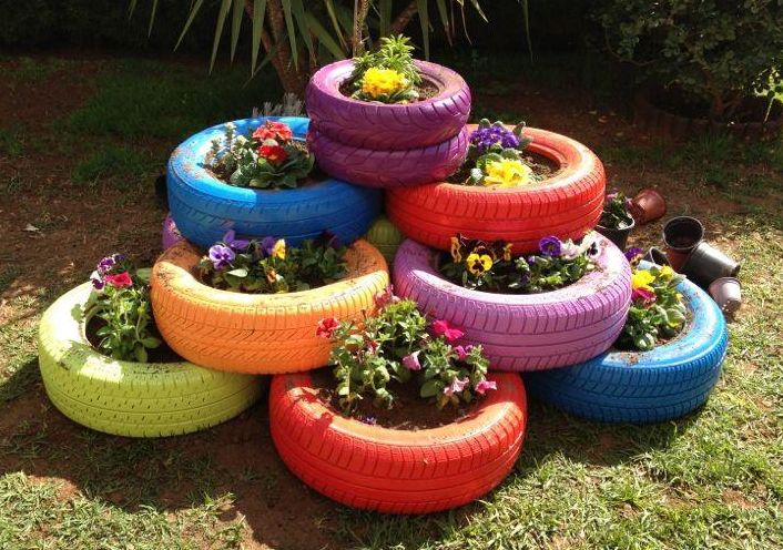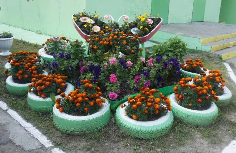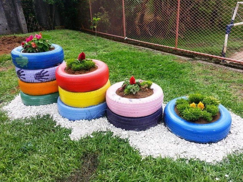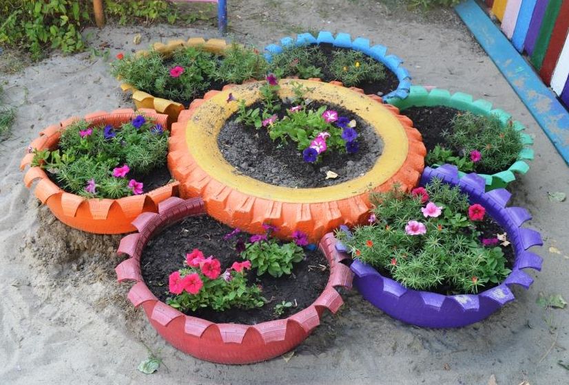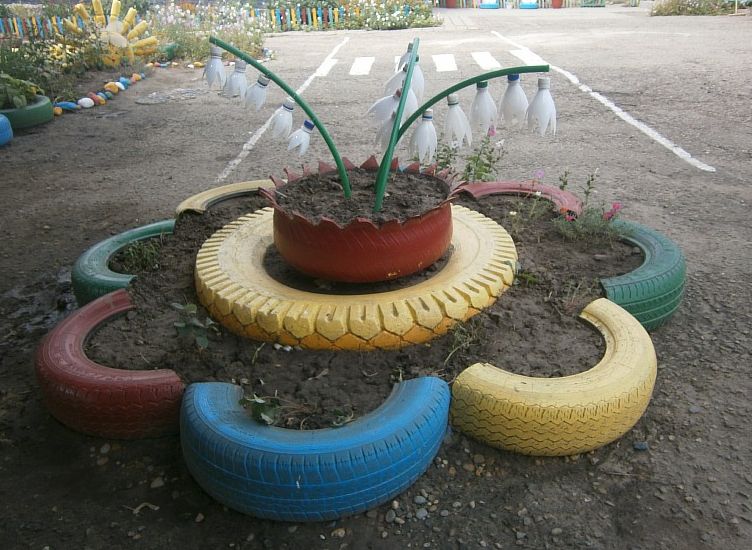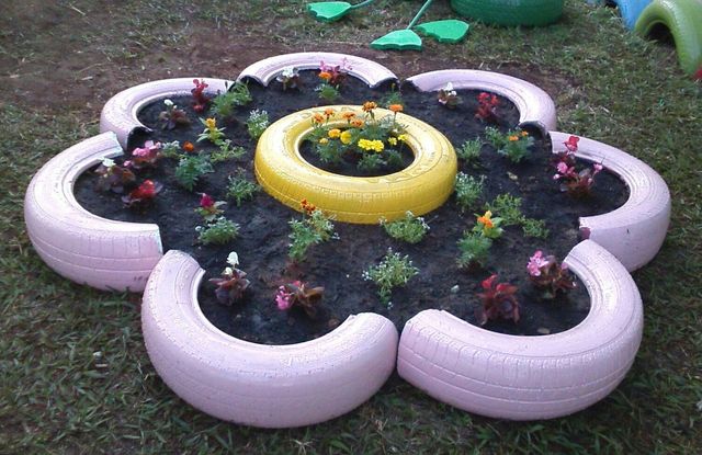 Цветник из шин