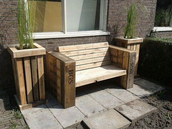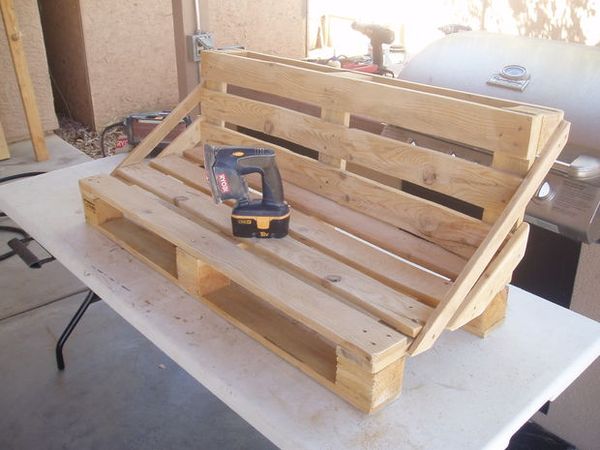 Паллеты часто используют для изготовления скамеек. Ширина паллеты велика для сидения скамьи. Ее надо обрезать, а остаток может пойти на устройство спинки.
