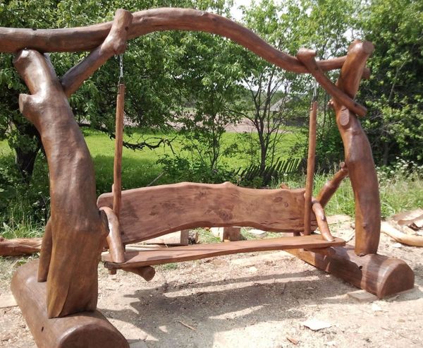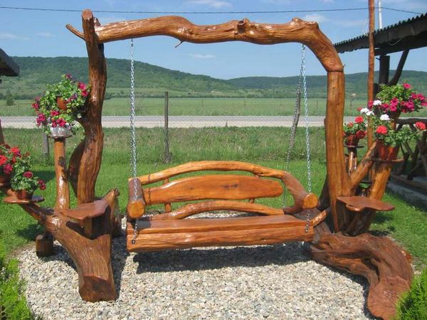 Древесину можно использовать для изготовления различных садовых фигур, которые украсят приусадебный участок. Они могут служить не только элементом оформления, но и игровым предметом. Так, например, из коряг можно сделать качели.