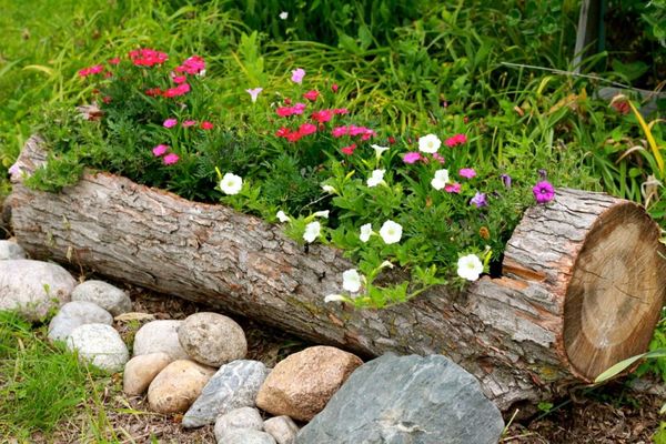 Кашпо из дерева очень гармонично вписываются в ландшафт сада и великолепно гармонируют с сочной зеленью и яркими красками цветов. Для изготовления деревянных кашпо своими руками можно использовать пни, бревна, ветки, ящики и паллеты.