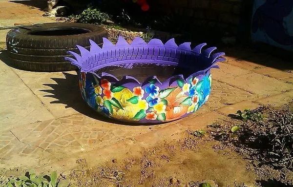 Клумба из покрышки