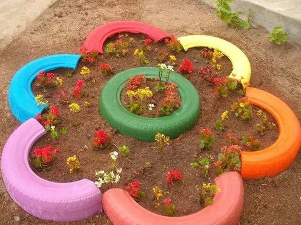 Идеи создания клумб из покрышек