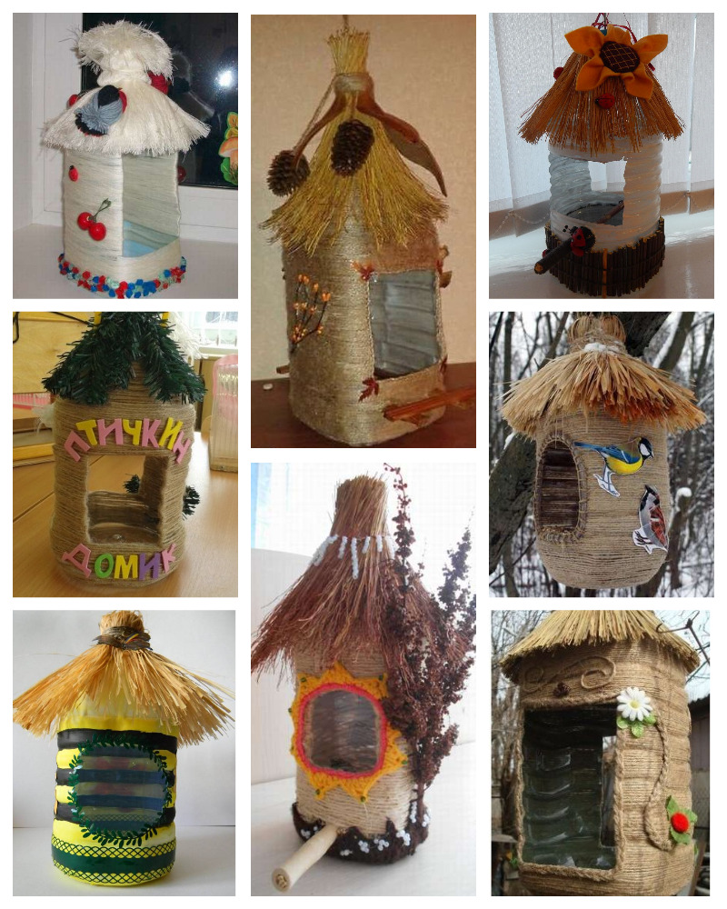 Мы предлагаем вам несколько простых вариантов изготовления кормушек из пластиковых бутылок различного объема. Доработать каждый из них вы можете по своему желанию.