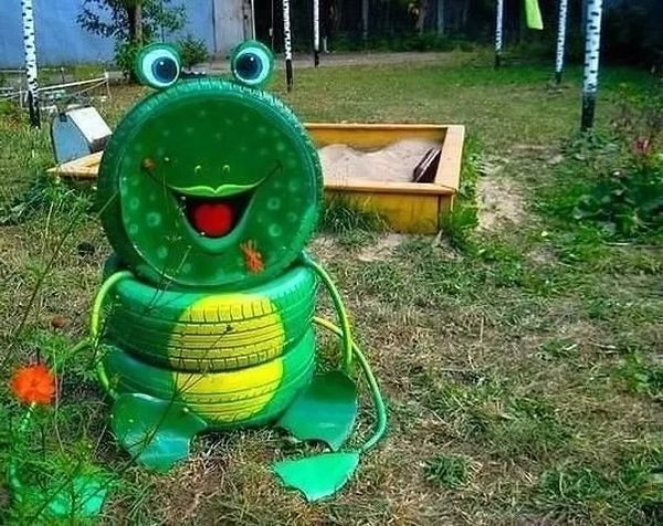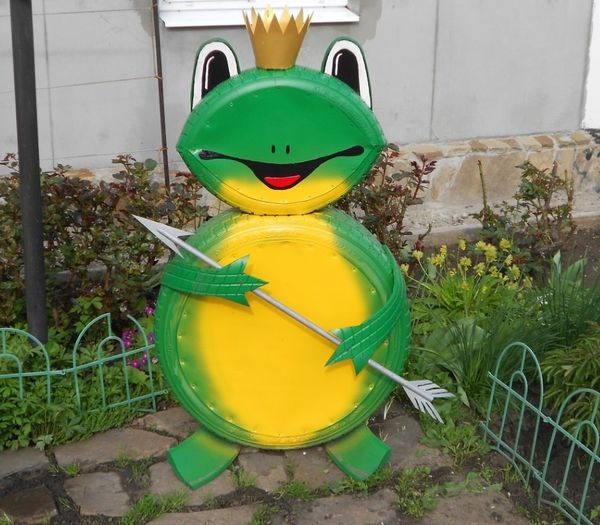 Все периодически сталкиваются с отжившими свой век покрышками, даже не имея собственного автомобиля. Старые шины можно увидеть около мусорных баков, гаражных комплексов, шиномонтажных мастерских. Между тем, из старых покрышек можно сделать очаровательное украшение для садового участка – лягушку. Рассмотрим, как сделать лягушку для дачи в нескольких вариантах.