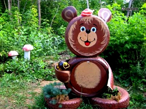 Поделки из автомобильных покрышек могут самыми разнообразными. Такой вариант, как поделка "медведь из шины" делается достаточно просто, если у Вас руки растут "откуда надо" и имеется немного фантазии. Мишка может быть просто садовой скульптурой, а может нести и функциональность – быть частью кашпо или подставки под что-либо.