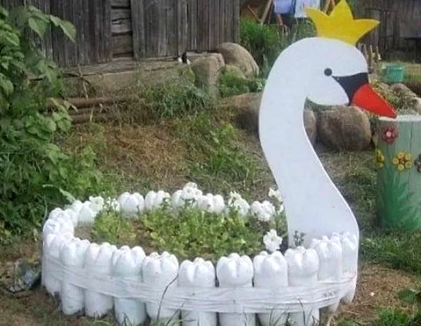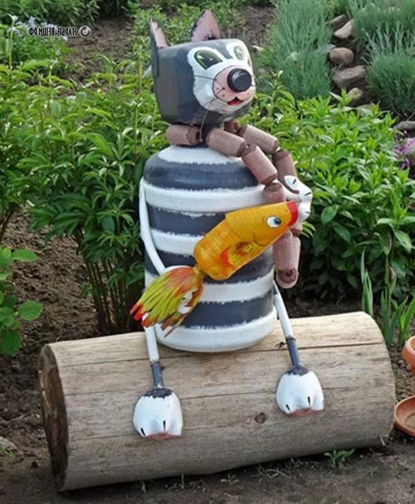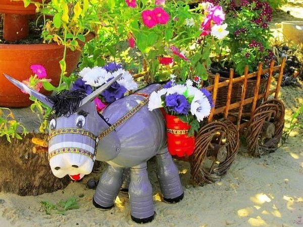 Оригинальные поделки для дачи можно сделать из совершенно бросового материала: пней, старых покрышек, пластиковых бутылок, жестяных банок, старых бытовых приборов и т.д., которые могут занять достойное место на вашем дачном участке. Если вы посмотрите, то убедитесь, что из подручного материала получаются удивительно красивые оригинальные вещи, гордость любого сада. Все эти сами по себе непривлекательные на первый взгляд предметы легко превратить в креативные украшения для дачи. Ведь дача – это уникальное место, это личное пространство, которое каждый человек облагораживает сам на свой вкус. Сегодня можно найти множество прекрасных и интересных идей, как украсить свой участок и как вместе с этим подарить старым вещам новую вторую жизнь. Посмотрите, как из обычных на первый взгляд пластиковых бутылок можно своими руками сделать интересные и необычные поделки, которые украсят любой приусадебный участок.
