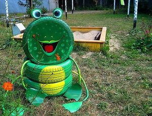 Из старых покрышек можно сделать очаровательное украшение для садового участка – лягушку. Не обязательно использовать для этого цельную шину, можно взять даже ее часть. Рассмотрим, как сделать лягушку в нескольких вариантах. Подробнее…