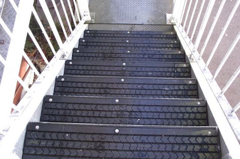 Самый простой вариант использования покрышек в качестве оббивки ступеней является очень функциональным - надежные протекторы не дадут вам поскользнуться на ступенях.
