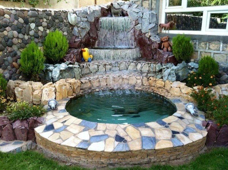 Не выкладывайте камни или песок на дно прудика, чтобы вода в водоеме не мутнела. Садовые светильники помогут осветить прудик в вечернее время суток. Из большой покрышки можно сделать настоящий бассейн для купания детей.