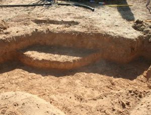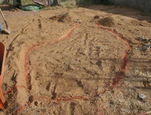 После того, как форма и размеры пруда определены, размечаем любым способом (например, веревкой с колышками) границы и начинаем рыть котлован. Любые ветки, корни, камни, встречающиеся при этом, необходимо удалить. Сложность при рытье может состоять в том, что стенки котлована будут осыпаться. Ничего страшного! Их просто нужно периодически смачивать водой и уплотнять – тогда они останутся на своем месте. Дно полученного котлована необходимо утрамбовать, засыпав сверху слоем песка около 10 см.
