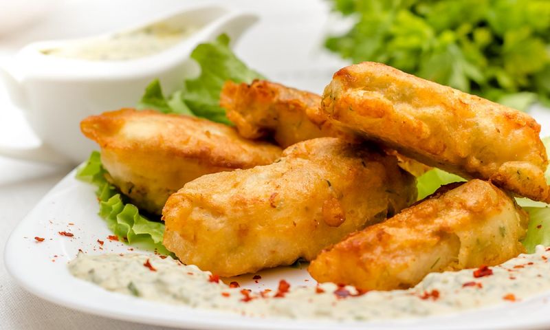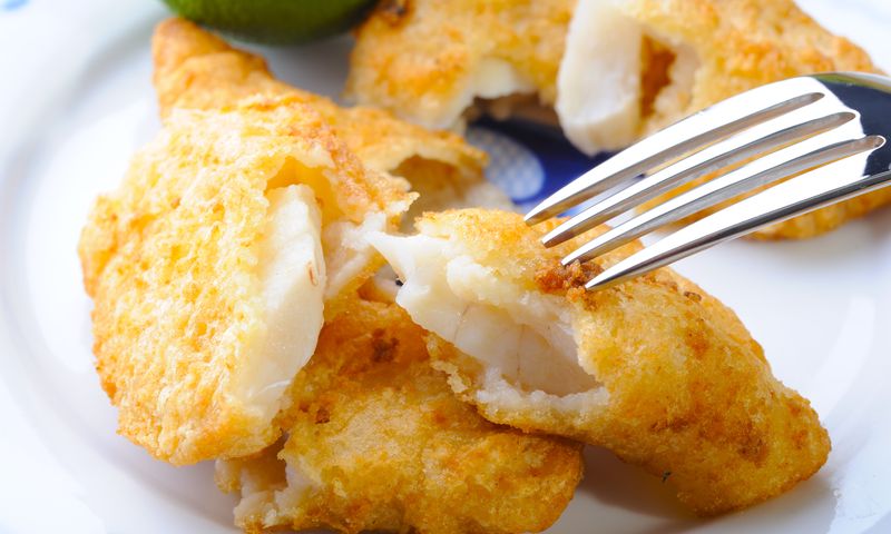 Приготовление:❶ Из яйца, кефира, муки и сахара замесить тесто. По консистенции оно должно напоминать густую сметану. ❷ Филе минтая нарезать на небольшие кусочки (величиной со спичечный коробок). ❸ Раскалить на сковородке растительное масло. Экономить на масле не стоит, иначе рыба прожарится неравномерно. ❹ Кусочки минтая поочередно окунуть в тесто и опустить в разогретое масло. Обжарить рыбу с двух сторон и вынуть шумовкой. ❺ Готовые кусочки выложить на бумажное полотенце, чтобы оно впитало лишний жир.