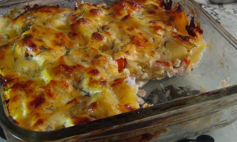 Из филе минтая можно приготовить блюдо, которое понравится и взрослым, и детям. Это запеканка с рыбой и картофелем под сырной корочкой. Блюдо легко и быстро готовиться. Ингредиенты: