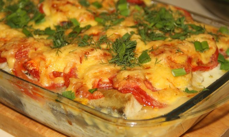 Еще один способ приготовления филе минтая в духовке - запечь его с помидорами и сыром. Ингредиенты:
