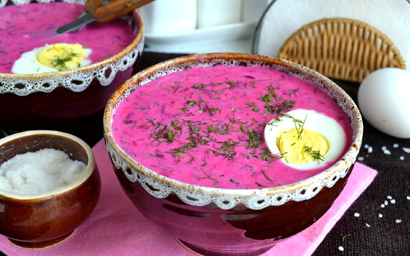 Холодник – популярное и легкое в приготовление белорусское блюдо. Его яркий освежающий вкус поможет спастись в жаркий летний зной. Простые продукты, входящие в состав этого супа, летом можно собрать прямо с грядки. Холодник из свеклы гармонично сочетает в себе вареные и свежие овощи, ароматную зелень, а также легкую кислинку уксусной или лимонной заправки. Подавать холодник принято со сметаной. черным хлебом и сочными перьями зеленого лука. Ингредиенты: