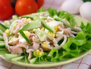Вкус кальмара нейтральный, поэтому он является идеальной основой для различных салатов. Мы предлагаем вам очень вкусный, простой рецепт салата с кальмарами, огурцами, яйцами и сыром. | |
