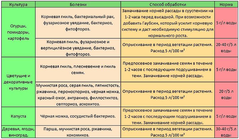 Триходермин покажет все свои достоинства, если предпосевная обработка им сочетается с текущей лечебно-профилактической. Инструкция по комплексному применению "Триходермина" дана в таблице ниже.