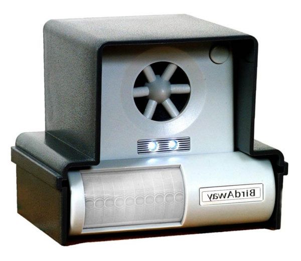 Сейчас в продаже есть специальные приборы, отпугивающие птиц. Чаще всего они оснащены встроенным инфракрасным или лазерным датчиком движения, потому включаются только при приближении десанта пернатых. Приборы издают неприятные для птиц, неразличимые человеческим ухом звуки высокого диапазона.