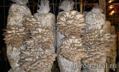 Теперь понадобятся мешки, где и будут расти наши вёшенки. Можно взять обычные полиэтиленовые мешки. В них стоит сделать дырки в два сантиметра и на расстоянии друг от друга 15 – 20 сантиметров. Именно через них будут расти грибы. Мешки наполняются по следующей схеме: первым слоем идёт влажный субстрат (15 сантиметров), затем - слой мицелия (покупного или выращенного самостоятельно) вешенок и так чередуем, пока мешок не заполнится на 2/3. Затем мешок надо завязать и поместить в подготовленной помещение. Вы можете либо подвесить мешки, либо просто поставить их. Температурный режим должен быть 22-24 градуса. А температура внутри мешка – максимум 28 градусов. Обеспечьте уровень влажности в помещении 95 процентов. Яркого света эти грибы не требуют. Мешки следует перенести в растительное помещение после того, как появится грибница. Обязательно располагайте их на расстоянии друг от друга, дабы циркулировал воздух.