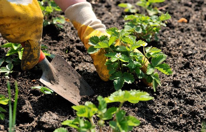 Предварительно готовится грунт под посадку. Земляника предпочитает легкие почвы, суглинистые, супесчаные или черноземные. Улучшить структуру песчаной почвы поможет добавление торфа. В глинистый грунт добавляют крупный песок.