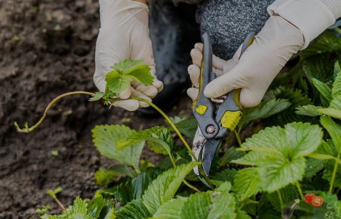 Излишняя загущенность приводит к распространению заболеваний, негативно сказывается на развитии клубники и ее урожайности. Дополнительно обрезают розетки и прикорневые листья растений. Работы проводят острыми ножницами или секатором.