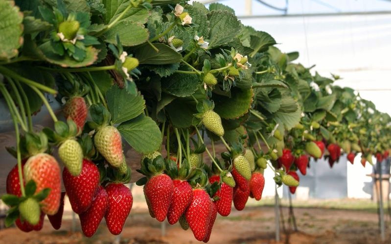 Любимую многими клубнику или землянику садовую можно выращивать даже зимой в тепличных условиях. Современные сорта и технологии выращивания позволяют заняться этим любому садоводу. Круглогодичное выращивание клубнички, конечно, потребует от вас труда, знаний и финансовых вложений, но зато оно даст возможность иметь на столе вкусные и полезные ягоды вне зависимости от сезона и погодных условий. Выращивание клубники в теплице позволит сэкономить пространство участка при компактном размещении кустиков, а также сохранить большой процент урожая. Но успех этого мероприятия напрямую зависит от грамотного выбора сорта и правильного ухода за растениями. Клубника хоть и не особо прихотливое растение, но все же требующее надлежащей заботы. Эту культуру можно выращивать практически в любой теплице, но наиболее подходящими являются стеклянные либо поликарбонатные теплицы на деревянном или металлическом каркасе. Причем толщина поликарбоната должна быть не менее 16 мм, а основание достаточно прочным, чтобы выстоять под грузом снега. В теплице придется создать необходимые условия — поддерживать температуру воздуха от +10°С до +25°С (в разные периоды роста культуры нужна разная температура) и влажность воздуха в пределах 70-80%.