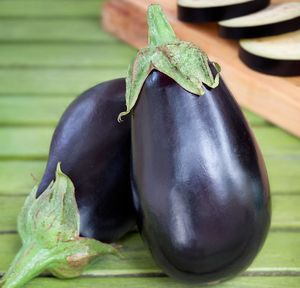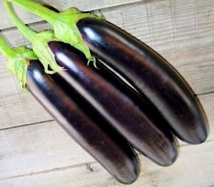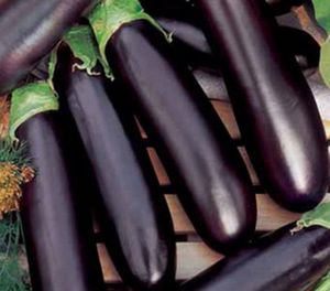 Среднеранняя культура с цилиндрообразными плодами, зрелые баклажаны имеют темно-фиолетовый насыщенный окрас, мякоть с зеленоватым отливом, без горчинки. Сорт отличается дружным проклевыванием семян и одновременным созреванием плодов. Компактное растение. Плоды имеют длину 14,5–17,5 см и весят от 100 до 160 гр. |