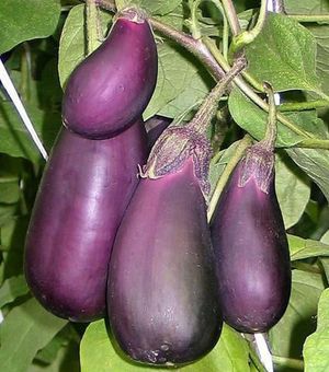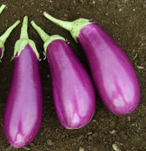 Высокое полураскидистое растение. Плоды удлиненные, цилиндрической формы, фиолетовые с белыми полосками. Беловатая мякоть не имеет горечи. Плоды достигают массы 200 гр. Сорт адаптирован для теплиц, он не боится перегрева, который часто случается в парниках в погожие дни. В таких условиях растения приносят 4,5 кг. плодов с кв. метра. |