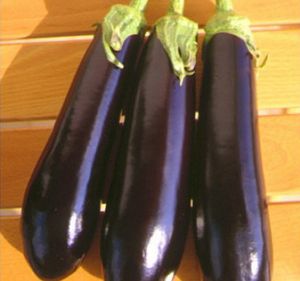 Сорт среднеранний. Дозревшие плоды - цилиндрической формы, кожица на зрелых экземплярах насыщенно-фиолетовая или черная, мякоть светлая до белизны, без горчинки. |