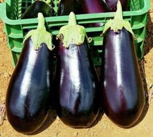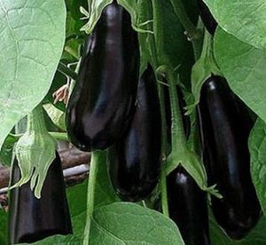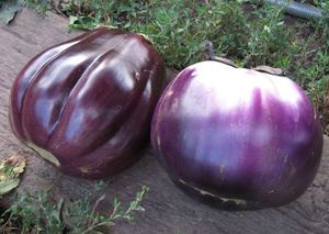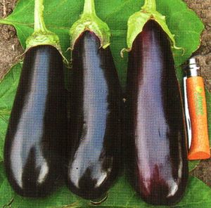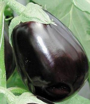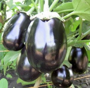 Сорт относится к высокоурожайным. От всходов до плодоношения проходит 115–120 дней. Сине-фиолетовые плоды, похожие на укороченные груши имеют массу от 300 до 450 гр. Можно выращивать под пленкой. |