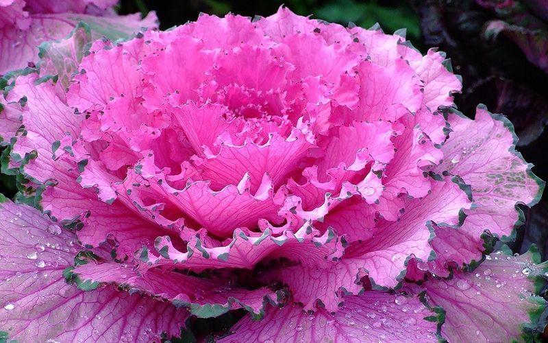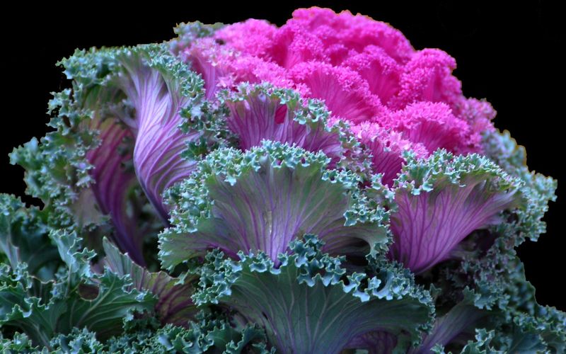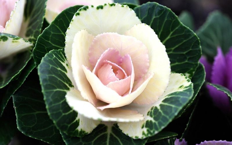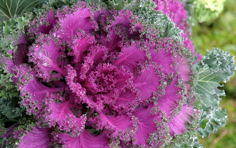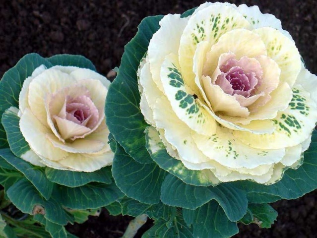 Декоративная капуста поражает разнообразием цветов: оттенки зеленого с сизым, голубым, розовыми или сиреневыми пятнами, кремовые, желтые, фиолетовые. Свои лучшие качества декоративная капуста демонстрирует осенью, после наступления заморозков.