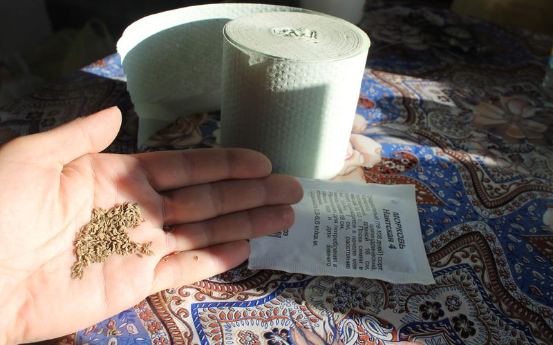 Посеять морковь равномерно, без необходимости последующего прореживания, можно разными способами (подробнее о способах посадки моркови в ЭТОЙ статье). Но самым распространенным, достаточно надежным и экономичным является способ посева моркови на туалетной бумаге.