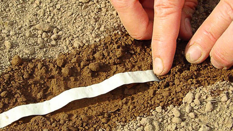 Посадка таким способом заключается в укладке полос с семенами в бороздки на грядках и засыпке их землей слоем примерно в 1 см.