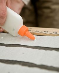 Остывший клей наносят на развернутые полосы туалетной бумаги. Делать это можно кисточкой или ватной палочкой. Но удобнее всего перелить клей в бутылочку из под ПВА-клея или любую другую похожую. Клей наносят точечно на расстоянии 4-5 см.