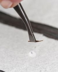 Затем, с помощью пинцета, раскладывают поверх клея семена моркови.
