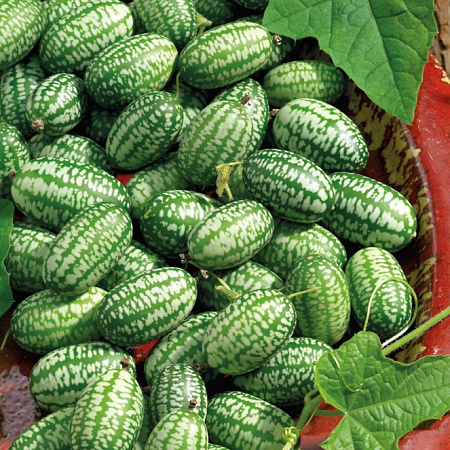 Мелотрию так же называют мексиканский миниатюрный арбуз. Ее плоды внешне и по вкусу напоминают маленькие огурцы. Разве что цвет плодов пятнисто-полосатый как у арбуза. Молодые «огурчики» можно есть свежими в салатах или солить и мариновать. Помимо плодов мелотрия образует съедобные клубни, которые тоже можно использовать в салатах. Их вкус близок к огурцу и редиске. Мелотрия – растение миниатюрное и не требует большого объема почвы, потому ее можно сажать на балконах. Масса одного клубня – до 400 г. С одного растения 6 кг плодов и 1 кг клубней. |