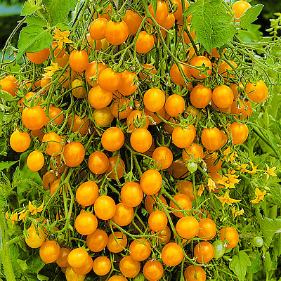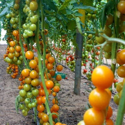Скороспелый гибрид неограниченного типа роста (индетерминантный). Через три месяца после появления всходов начинается сбор первого урожая оранжево-солнечных плодов размером с алычу (33 г), собранных в длинные кисти по 16-18 штук. Плодоношение продолжительное – успеете вдоволь насладиться изумительным нежным вкусом и законсервировать на зиму. |