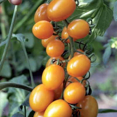 Яркий оранжевый томат. Отличается размером и формой плодов. Плотные цилиндрические гладкие янтарно-оранжевые «виноградины» массой 10 г усыпают длинные кисти, радуют отличным вкусом, а уж как хороши в заготовках — нетрудно себе представить. |