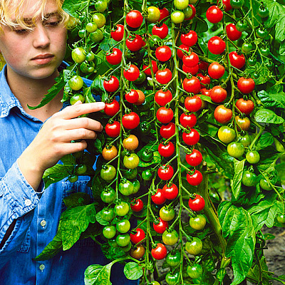 Помидоры черри — это группа сортов и гибридов томатов с миниатюрными плодами весом от 10 до 30 гр. На сегодняшний день в мире насчитывают более 100 видов мелкоплодных томатов. Они различны по окраске и форме плодов: красные, малиновые, оранжевые, желтые и даже черные помидорчики бывают круглыми, каплевидными, овальными и удлиненными. Представляем вам лучших сортовых представителей томатов черри. Это современные гибриды, характеризующиеся высокой устойчивостью к перепадам температур, заболеваниям и способностью аккумулировать влагу при нерегулярном поливе.