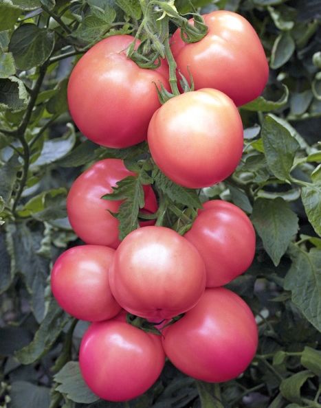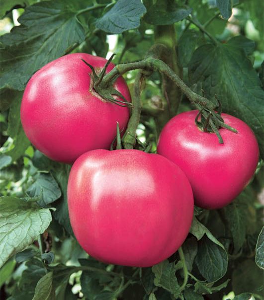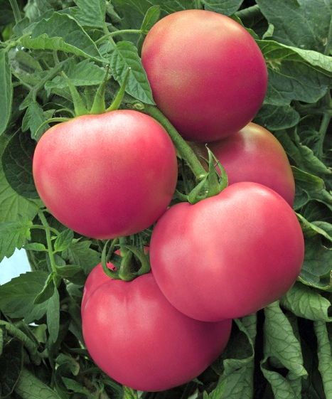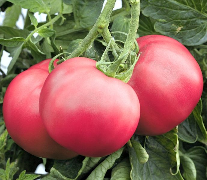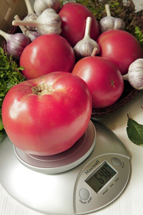 Куст высотой 70-100 см, высокоурожайный. И когда ярко светит солнце, и когда часто льют холодные, нудные дожди, плоды этого всепогодного помидора отлично завязываются. Весом они от 500 до 700 г. Яркий, чистый, малиновый цвет, а вкус просто великолепен. |