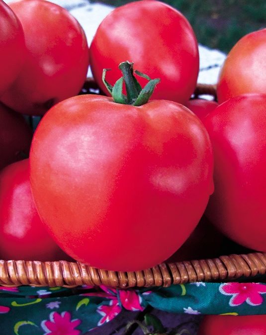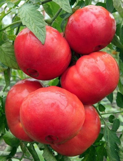 Плоды плоскоокруглые, мясистые, ярко-малиновые, весом 600-800 г. Они имеют высокую устойчивость к растрескиванию и хорошую плотность. Сорт этот прост в выращивании, но отзывчив на тщательный уход и хорошее питание. Хорошо завязывает плоды как при высоких, так и при низких температурах. Куст высотой 80-100 см. |
