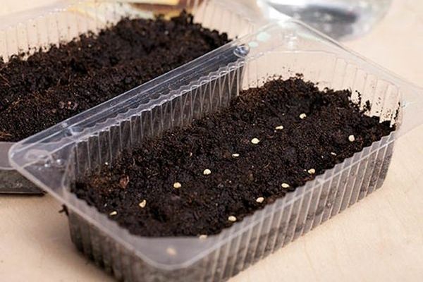 Семена томатов сеют в любую неглубокую тару, наполненную обычной садовой землей (предварительно продезинфицированной) или покупным почвогрунтом для рассады на глубину не более 1 см по 2-3 штучки. Расстояние между семенами должно составлять 2-3 см, чтобы саженцы не были утолщены. После этого посевы присыпаются грунтом, увлажняются из пульверизатора, накрываются пленкой или стеклом и помещаются в теплое место с постоянной температурой около 25°C.