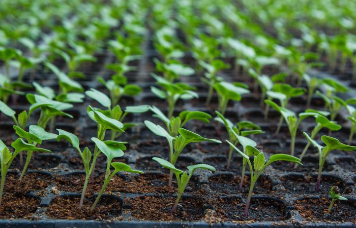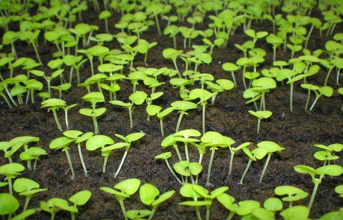 В ящики глубиной 4-5 см укладывают слой почвосмеси толщиной 3-4 см и поливают его раствором двух таблеток Гамаира и двух таблеток Алирина-Б в 10 л воды. Сделать это лучше за пару суток до посева. В день посева в почве делают на расстоянии 3 см друг от друга бороздки глубиной 1 см, в которые раскладывают семена на расстоянии 1-1,5 см, после чего присыпают бороздки почвой. Затем поверхность слегка уплотняют, посевы помещают на подоконник и содержат при температуре 18-20 ºC. Всходы появляются обычно через 4-5 дней.