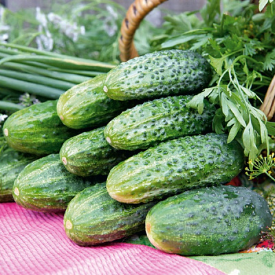 Среднеранний сорт. Урожайность, товарность и вкусовые качества очень высокие. Зеленцы короткие, крупнобугорчатые, тёмно-зелёные, с размытыми полосами, хорошо транспортабельные и лёжкие. Растение преимущественно женского типа цветения, для больших и стабильных сборов подсадите сорт-опылитель со смешанным типом цветения. Благодаря устойчивости к наиболее вредоносным болезням достаточно долго балует ароматными свежими огурчиками, которые никогда не поздно законсервировать. |