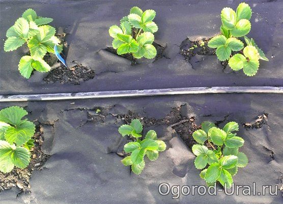 Таким способом можно защитить от сорняков, например, землянику, посадки которой делаются на три-четыре года. Черный цвет укрывного материала способствует более быстрому созреванию урожая, ягоды остаются чистыми при любой непогоде и доставляет удовольствие удобство их сбора. Укрывной материал на грядке служит примерно столько же, сколько живет грядка земляники до полной замены.